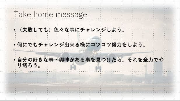 能代先生は受験に関して合格・不合格のどちらも経験する中で、スクール生たちに「失敗しても大丈夫!チャレンジしたことに意味がある!」という励ましのメッセージをくださいました。