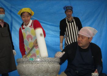 自分たちでついたおもちを、自分たちでクッキングした料理やトッピングでいただきます。